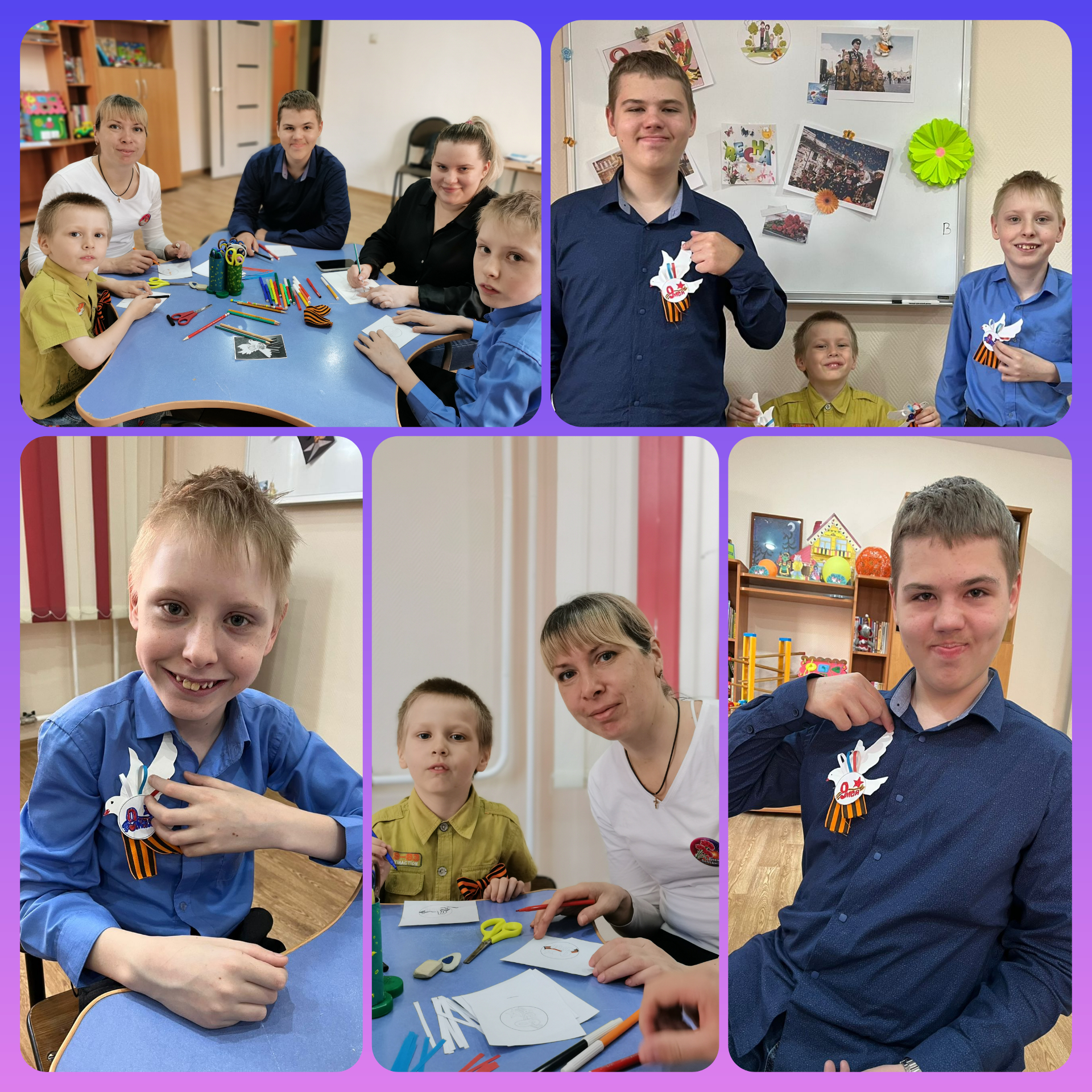 В отделении социальной реабилитации прошёл мастер класс мероприятие было приуроченно к празднованию 77 годовщины Победы. мы с ребятами изготовили нагрудные значки с символикой Праздника 9 мая демонстрируя единство, почтение Ветеранам и скорбь по погибшим участникам страшной войны.