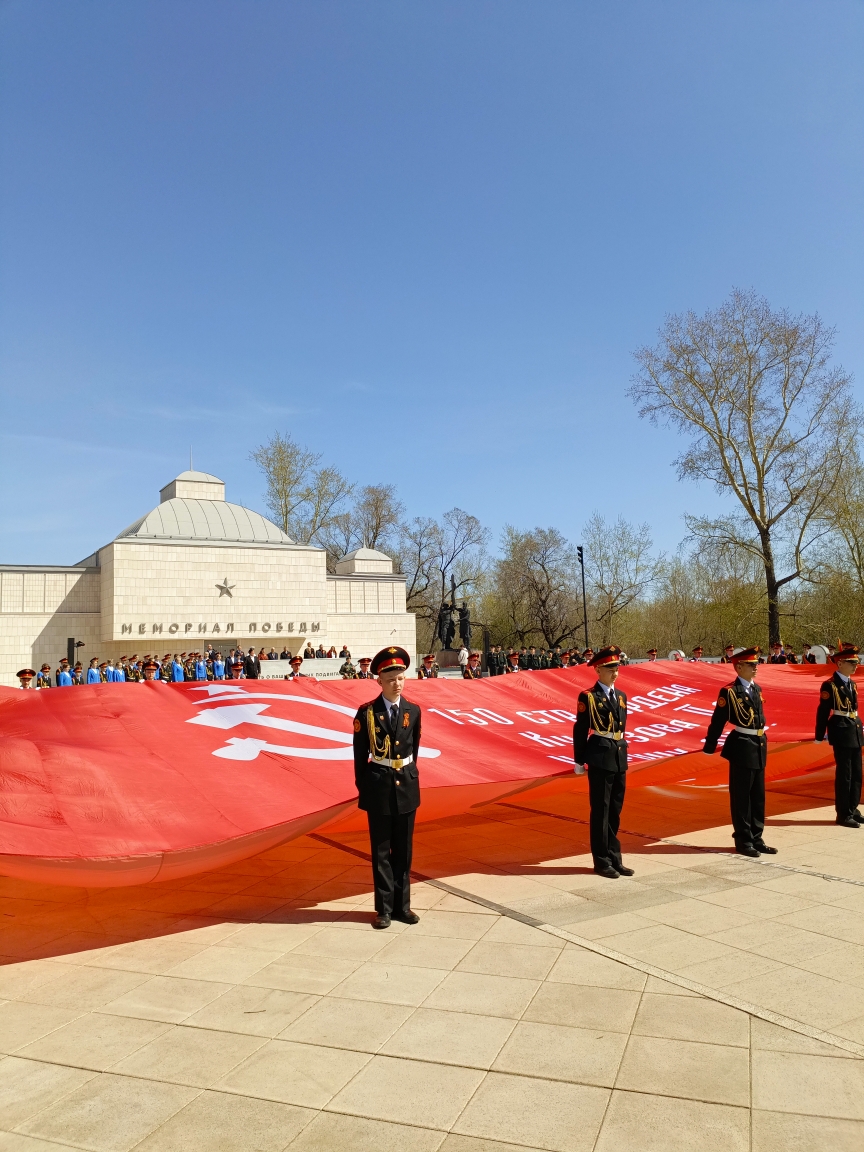 Мы с ребятами присутствовали на этом торжественном событии. Площадь победы превратилась в эпицентр патриотического движения. Здесь состоялся торжественный митинг, посвященный передаче символического Знамени Победы Томску. Это важное событие стало символом единства и уважения к памяти тех, кто отстоял нашу свободу в годы Великой Отечественной войны.