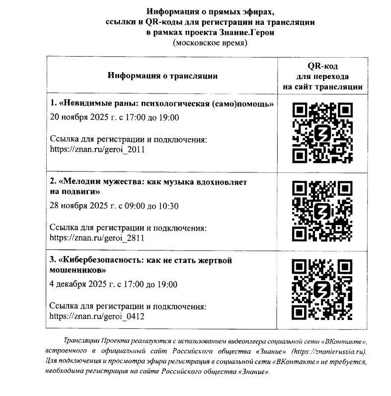 20 и 28 ноября 2025 г., а также 4 декабря 2025 г. запланированы три онлайн-встречи (далее прямые эфиры, трансляции), в ходе которых эксперты рассмотрят методы работы с разными психологическими состояниями, проанализируют влияние музыки на настроение и мотивацию человека и представят актуальные инструменты для защиты личных данных в цифровой среде.