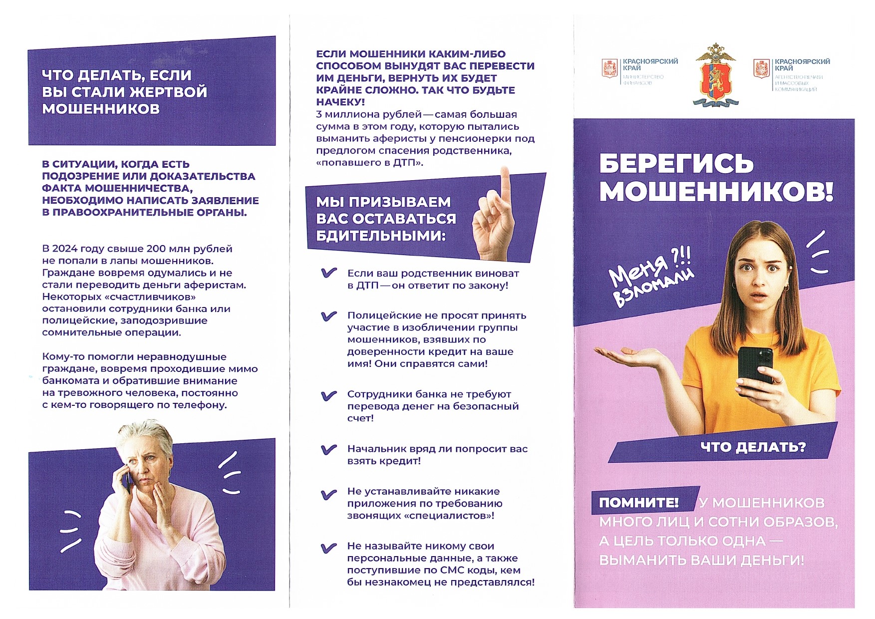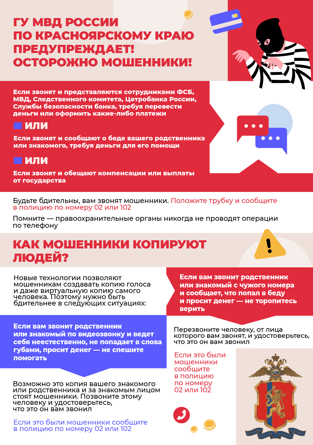 В целях профилактики преступлений, совершаемых в отношении населения Красноярского края с использованием информационно-телекоммуникационных технологий, агентство печати и массовых коммуникаций разработало видеоролики профилактической направленности о наиболее распространенных способах совершения преступлений. Ознакомиться с разработанными видеороликами можно перейдя по ссылке: Профилактика ИТ-мошенничества