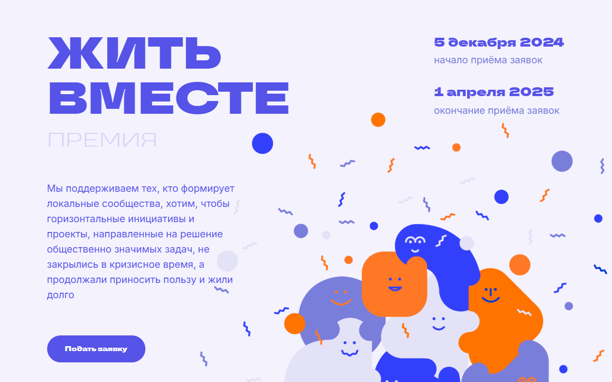 «Жить вместе» - это благотворительная премия, поддерживающая локальные инициативы по всей России, направленные на решение общественно значимых задач.