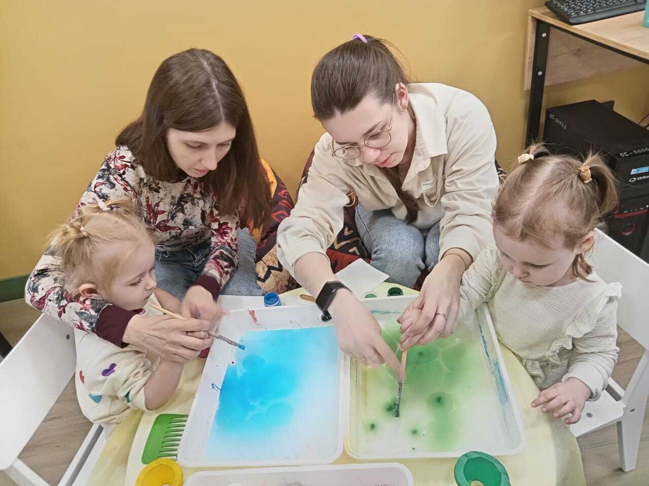 Вот и наши малыши со своими мамами окунулись в этот волшебный мир красок и создали настоящие маленькие шедевры!