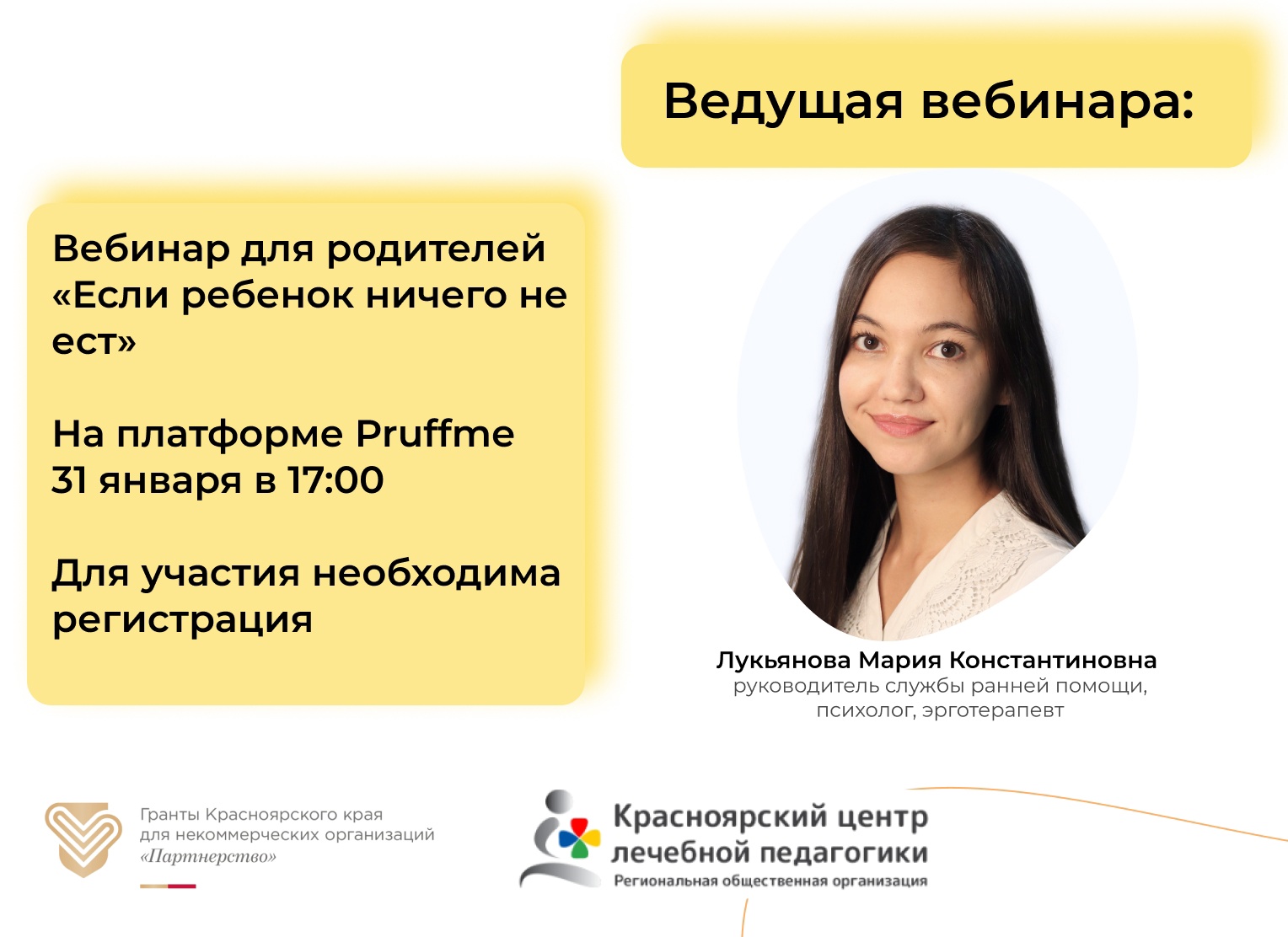 Уважаемые родители, 31 января с 17.00-18.30 состоится онлайн семинар «Если ребёнок ничего не ест». Это будет наша 2 встреча родительского лектория!